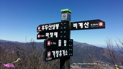 [2017/02/02 09:30~16:50 Phon 840(4)] 경남 거창군 가조면 수월리 19-1 고견사 주차장 ~ 고견사(1.2km) ~ 의상봉(1.0km) ~ 우두산 상봉(0.7km) ~ 마장재(2.0km) ~ 헬기장 ~ 뒷들재(1.5km) ~ 삼거리봉(0.5km) ~ 비계산(0.8km) ~ 마장재(2.8km) ~ 고견사 주차장(1.6km) - 12.1km